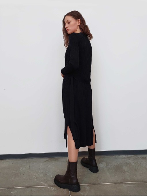 Made of merino wool blend yarn, which gives the product a special softness, increases quality and durability. The knitwear has long sleeves, the front closure can be closed with buttons and the product can be tied with a belt.