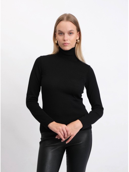 The sweater, woven from 100% merino wool yarn, is soft and comfortable opposite the skin. High collar is timeless and making it easy to combine. Sweater is suitable for everyday and festive wear.