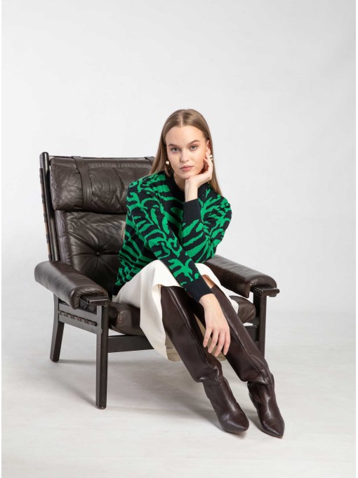 Trendikas sebramustriline meriinovillane džemper Bebra nahasõbralik toode, mis hoiab keha elegantselt soojas.