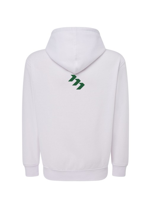 Pikkade varrukate, kapuutsi, luku ja taskutega valge unisex pusa.